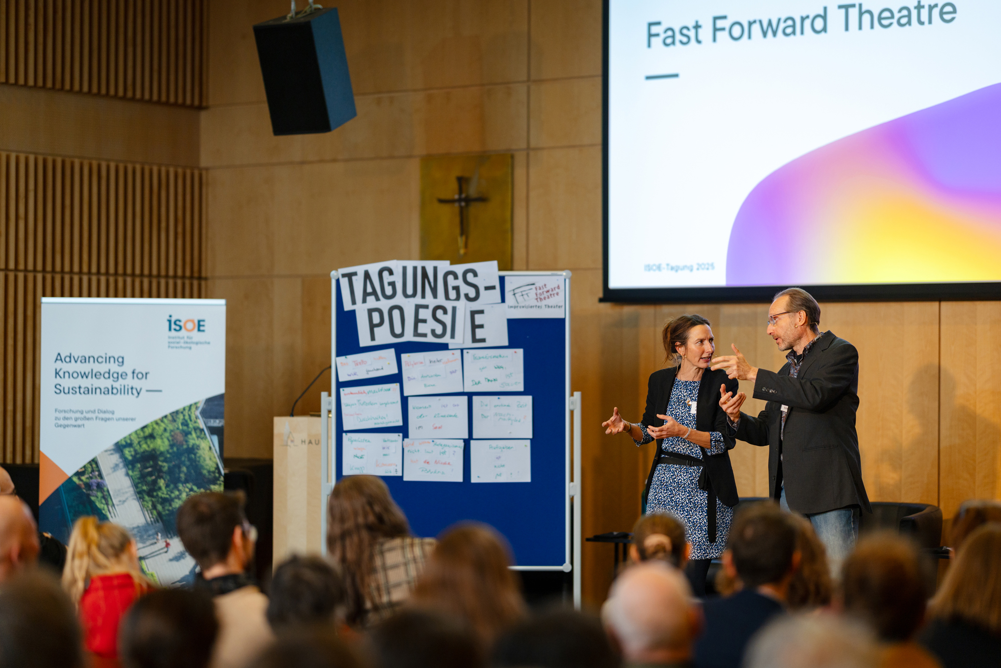 Die Teilnehmenden der Tagung nutzten die verschiedenen, auch heiteren Programmpunkte wie das Improvisationsformat „Fast Forward Theatre“ für einen intensiven Austausch untereinander und stellten fest: Die gegenwärtig um sich greifende Skepsis bis hin zur Ablehnung gegenüber den notwendigen Transformationsthemen fordert alle heraus, die sich aktiv für die Lösung von Nachhaltigkeitsthemen einsetzen. Doch bei Gegenwind heißt es, Kräfte zu mobilisieren. Und die ISOE-Tagung zeigte: Die Akteure der Nachhaltigkeit eint eine starke Entschlossenheit, die Segel neu zu setzen.